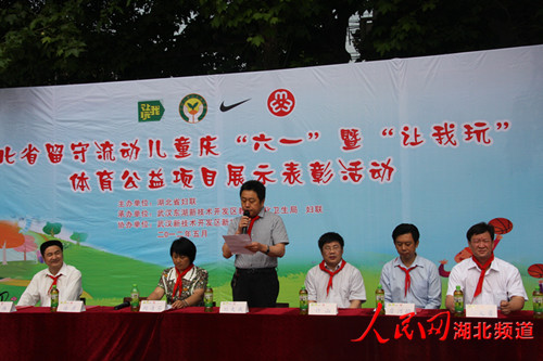 人民网武汉5月31日电  5月30日上午由湖北省妇联主办、武汉东湖新技术开发区教育文化卫生局承办、武汉新技术开发区新桥学校协办的湖北省留守流动儿童庆六一暨 让我玩体育公益项目展示表彰活动,在湖北省让我玩基地学校东湖新技术开发区新桥学校顺利举行。